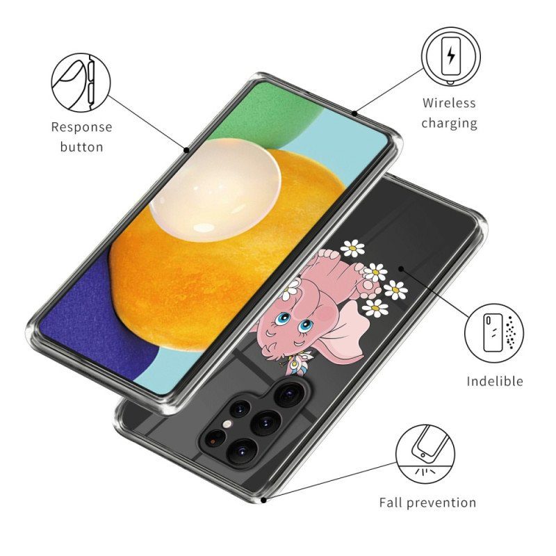 Detta Genomskinliga Skal, Med En Rosa Elefant, Är Perfekt För Att Skydda Samsung Galaxy S23 Ultra 5G Med Elegans.