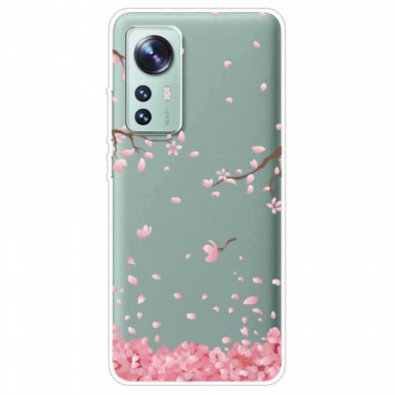 Förstora Din Xiaomi 12 / 12X / 12 Genom Att Installera Detta Fantastiska Genomskinliga Fodral Dekorerat Med En Dusch Av Rosa Blommor.