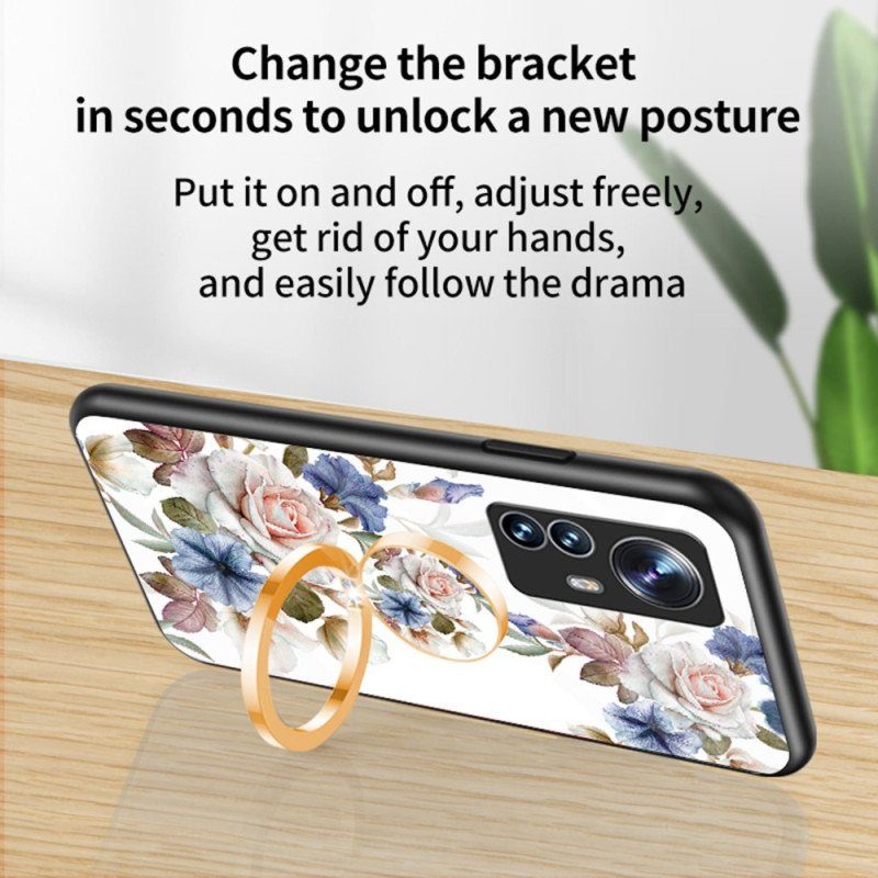 Det Här Flowers Härdade Glasfodralet, Med En Stödring, Skyddar Xiaomi 12 / 12X Medan Du Bär Den På Fingret.